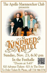 During its history, the Apollo Maennerchor Singers have performed innumerable concerts both locally, across America and in Germany. They have showcased the talent, energy and dedication to preserving familiar customs while adapting to the opportunity and progress present in the Shenango Valley. Maennerchor translates to Men’s choir in English.