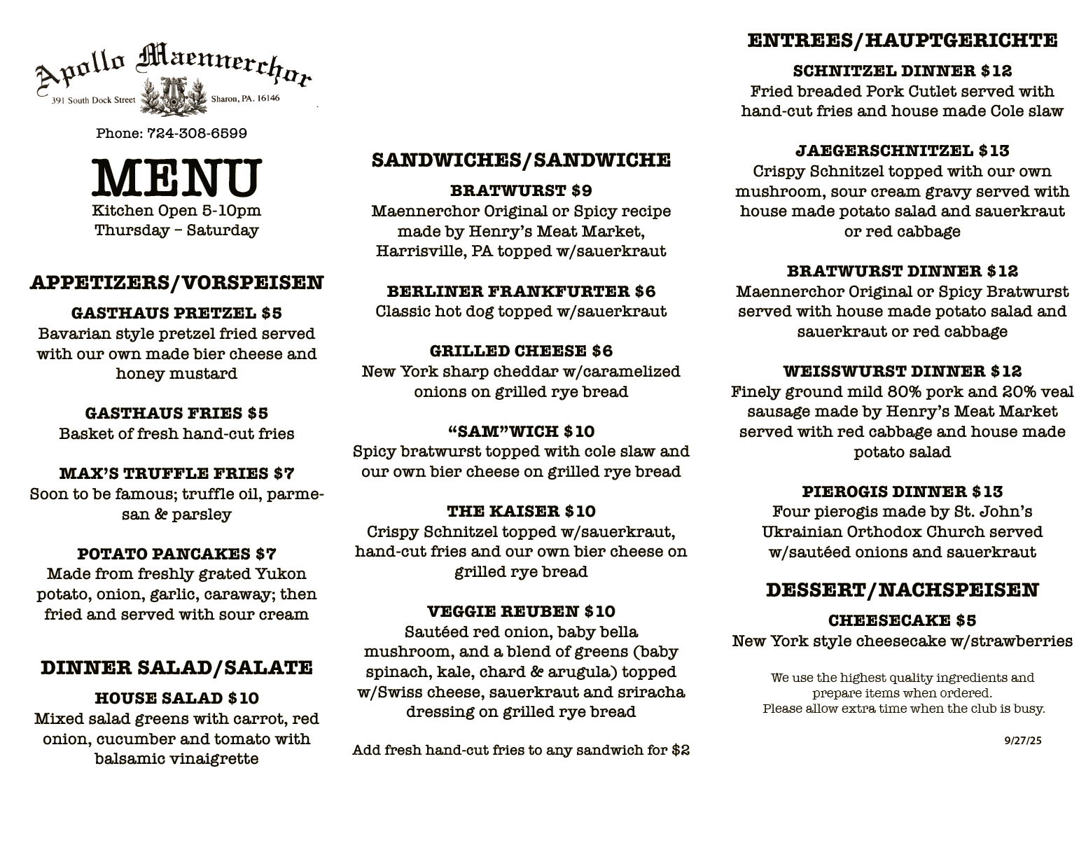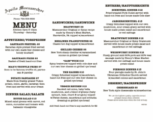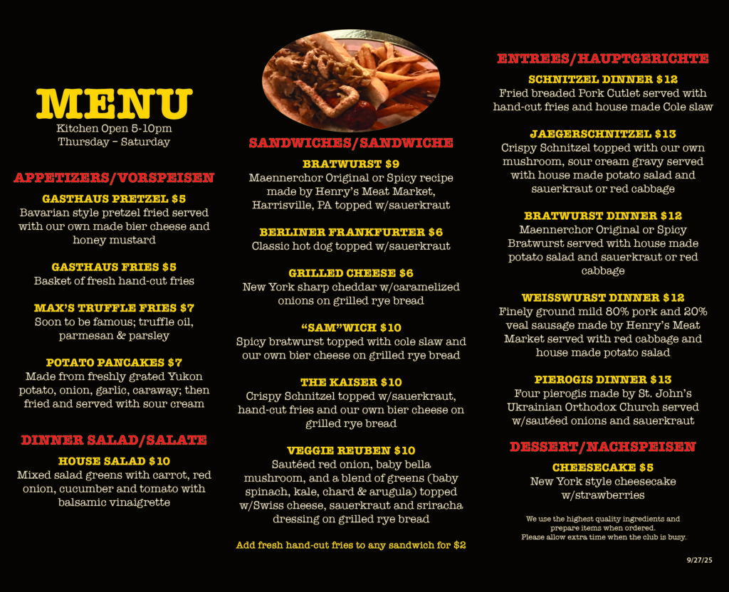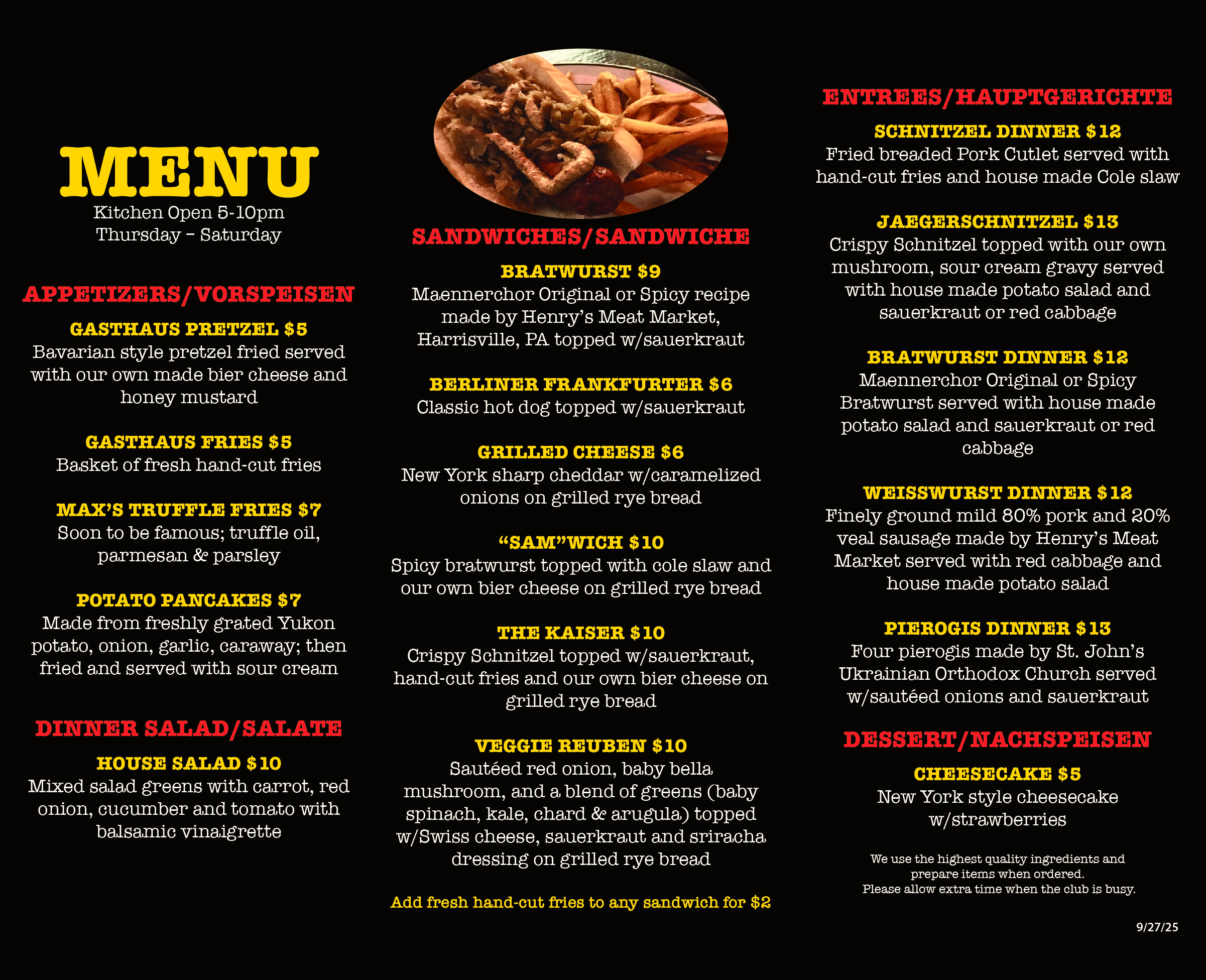 Menu pricing includes 6% Pennsylvania sales tax. Click to view full screen
